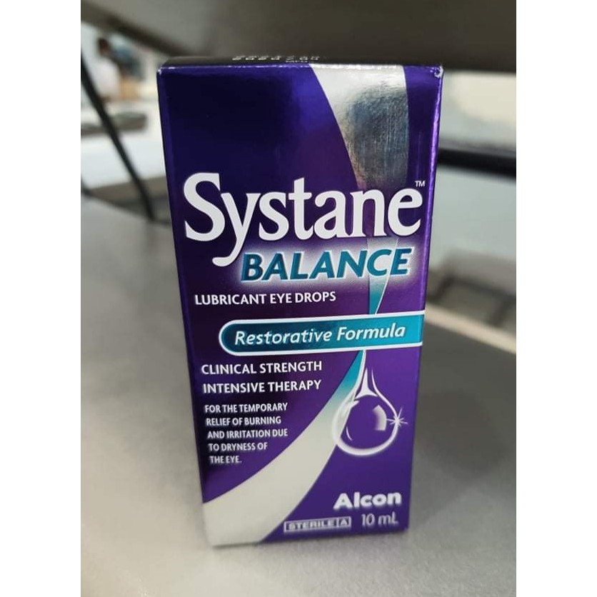 Systane Balance Lubricant Eye Drops Systane from systane-my.myalcon.com May be used to treat dry eye . Systane balance lubricant eye drops . Systane balance eye drops allows temporary relief of burning and irritation caused by symptoms associated with dry eyes. Propylene glycol 0.6% w/v, dimyristoyl phosphatidylglycerol 0.005%. Systane balance lubricant eye drops is a lipid based lubricating product for the therapy of dry eye. For the temporary relief of burning and irritation due to dryness of the eye. Instill 1 or 2 drops in the affected eye(s) as needed. Boric acid, dimyristoyl phosphatidylglycerol, edetate disodium, .